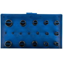 Este práctico surtido incluye 300 anillos de seguridad exteriores (circlips) en 18 medidas diferentes, desde 3 mm hasta 32 mm, organizados en una caja con compartimentos que facilita su identificación y uso.