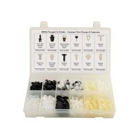 Kit de 300 clips de seguridad tipo E-Clip, de 1,5 a 22 mm. Fabricados en acero fosfatado con acabado negro, organizados en caja plástica.