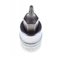 Llave de vaso 1/4" con punta Torx para tornillos hembra Torx. Fabricado en acero al cromo-vanadio endurecido y templado para mayor resistencia a la corrosión. Vaso cromado con efecto satinado y anillo estriado para un mayor agarre. Cuadradillo del vaso: 1/4" Medida: Torx T25.