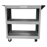 VISTA barra de ferramentas móvel com 3 prateleiras e lados perfurados com 12 ganchos. Este carro único é um equipamento indispensável para qualquer oficina ou garagem, pois oferece funcionalidade e mantém a ordem. Além disso, ao lado do carro há uma prateleira para vários tipos de pequenas ferramentas, tais como chaves de fenda, chaves de fenda e uma alça para guiar ou puxar o carro. Fabricado com material de alta qualidade, garante resistência e durabilidade, e recompensa de design adequada com um olhar brilhante.
