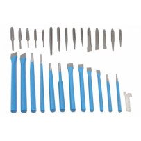 Um jogo de formões, socos e socos, 28 elementos feitos de aço cromo-vanádio e aço carbono, ideal para processamento de madeira, metal e outros materiais. O jogo contém: · 5 socos em linha reta (aço CR-V): Ø 2,4 × 100 mm, Ø 3,2 × 120 mm, Ø 4 × 125 mm, Ø 5 × 135 mm, Ø 6,5 × 145 mm · 5 socos cónicos (CR-V Aço): Ø 2,4 × 135 mm, Ø 3,2 × 145 mm, Ø 4 × 150 mm, Ø 5 × 160 mm, Ø 6,5 × 170 mm · 3 quisels planos (aço CR-V): 9,5 × 140 mm, 12,5 × 150 mm, 16 × 165 mm · socos 2 você. (CR-V de aço): Ø 3 × 125 mm, Ø 4,8 × 150 mm. · Calibre profundo 1 UD. (Steel CR-V) · Quisels plana de 6 peças (aço carbono): 12,5 × 170 mm, 5 × 180 mm, 19 × 200 mm, 18 × 200 mm, 22 × 250 mm, 25 × 250 mm · 4 socos Ø 3 × 150 mm, Ø 18 × 260 mm, Ø 9,5 × 125 mm, 9,5 × 250 mm. · 2 Punts 2. (aço carbono): 145 mm e 375 mm. · Tampa feita de material durável