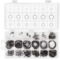 Este sortimento prático inclui 300 anéis de segurança externos (Circlips) em 18 medidas diferentes, de 3 mm de até 32 mm, organizado em uma caixa com compartimentos que facilitam sua identificação e uso.