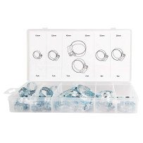 Conjunto de 26 emplaces de aço galvanizado do pecado em vários diâmetros (16 a 40 mm). Ajustável, resistente e organizado na caixa. Ideal para automotivo, encanamento e diy.