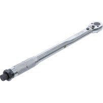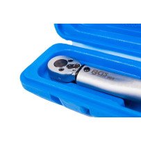 Chave dinamométrica profissional com o quadrado externo de 10mm (3/8 "), ideal para mecânicos e trabalho de manutenção. Incorpora catraca reversível com uma cabeça estreita, ajuste preciso do torque entre 5 e 25 Nm, e sistema de bloqueio seguro para um aperto controlado e confiável.