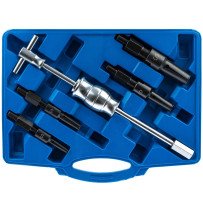 Conjunto de 5 ferramentas para remoção de rolamentos internos. O extrator interno remove o rolamento sem danificar as peças adjacentes.
