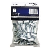 M3 nozes de rebite em aço carbono galvanizado, ideal para se juntar a placas finas, onde você precisa de um fio resistente. Fornecido em bolsa de 50 unidades.