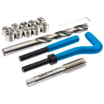 O kit inclui tudo o que você precisa para reparar uma linha feminina em aço, ferro fundido ou alumínio. Insertos ou Helicoil® criam um fio mais forte do que o original.
